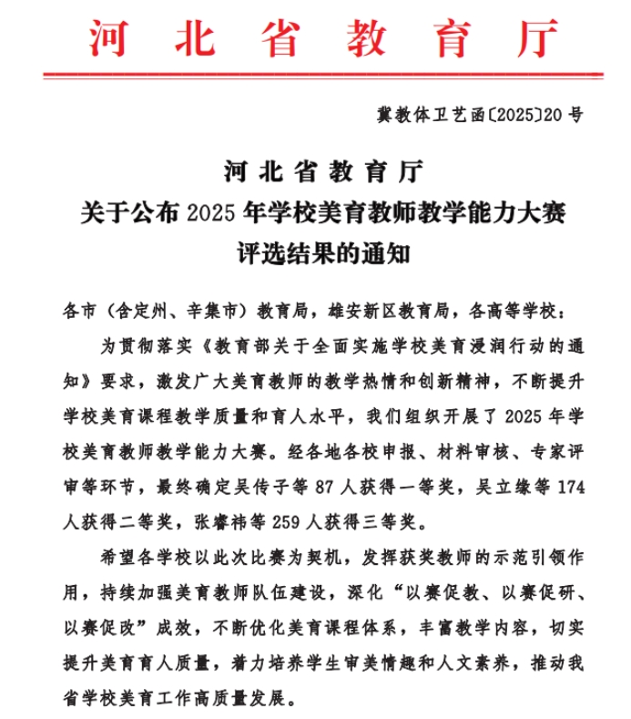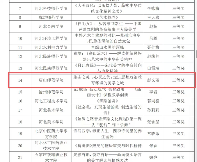 近日,河北省教育厅公布2025年高校美育教师教学能力大赛评选结果,威廉希尔教师彭文丽的授课作品《生态之美与心灵之约:走进思想政治教育环境的美学之城》获得三等奖。这一成绩不仅是教师的个人荣誉,更折射出当前美育与思想政治教育深度融合的创新趋势。