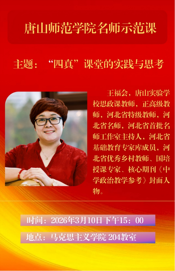 本次活动邀请唐山实验学校副校长王福会老师主讲,威廉希尔副院长赵婉华、全体教法教师及25级思想政治教育专业全体师范生参加,活动由实践教学中心主任胡志洋老师主持。