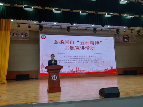 为深入学习弘扬唐山“五种精神”,扎实推进大中小学思政课一体化建设,2026年3月18日下午,“铁肩担道义热血铸信仰——弘扬唐山‘五种精神’”主题宣讲活动在唐山市第十一中学成功举办。